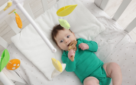 • X Remove teddy's/toys/anything from inside the cot