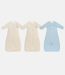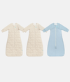 This bundle includes 2 x Sleep Bag Long Sleeve 3.5 TOG Cotton Oatmeal Moon Quilting and 1 x Sleep Bag Long Sleeve 1.0 TOG Cotton Powder Blue Twinkle