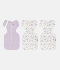This bundle includes 1 x Swaddle Up™ Transition Bag 1.0 TOG Cotton Lilac Meadow and 2 x Swaddle Up™ Transition Bag 1.0 TOG Cotton Jacaranda Meadow